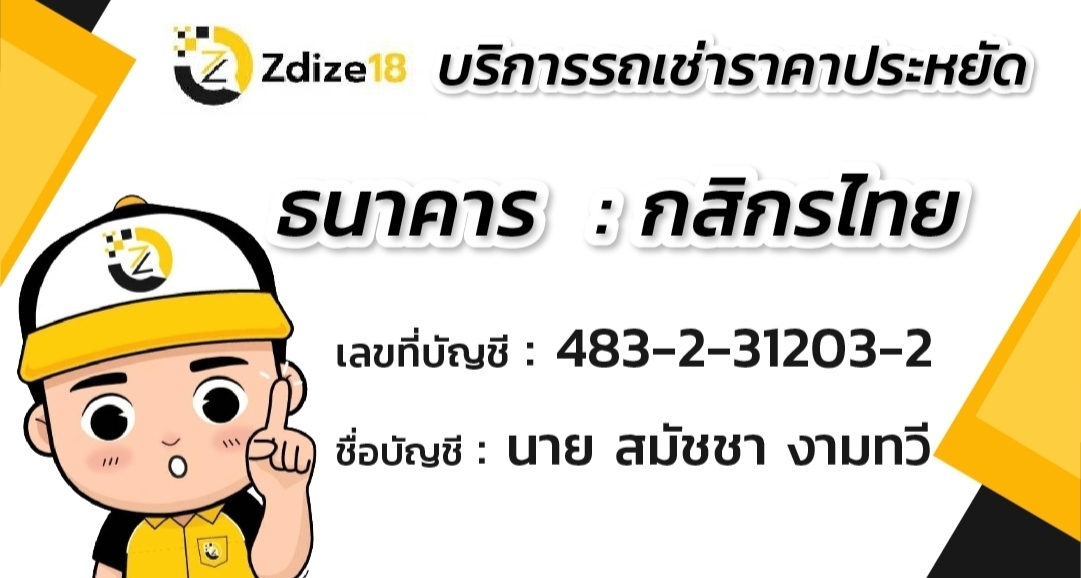 โอนค่ามัดจำ 1,000 บาท มาที่บัญชีด้านล่าง และมารับรถตามวันที่ตกลง